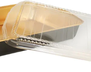 HFA – 7 lb Rectangular Black and Gold Entree Entrée Foil Pan with Clear Dome Lid, 25/Cs – 4204-80-25WLDL